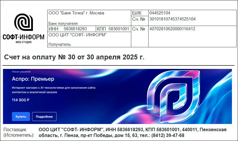 Счет-договор (Счет-оферта) на оплату покупателю с рекламой организации для 1С:Бухгалтерия 8, ред. 3.0.