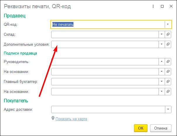 В качестве текста договора или оферты используем "Реквизиты печати, QR - код" в подвале документа.