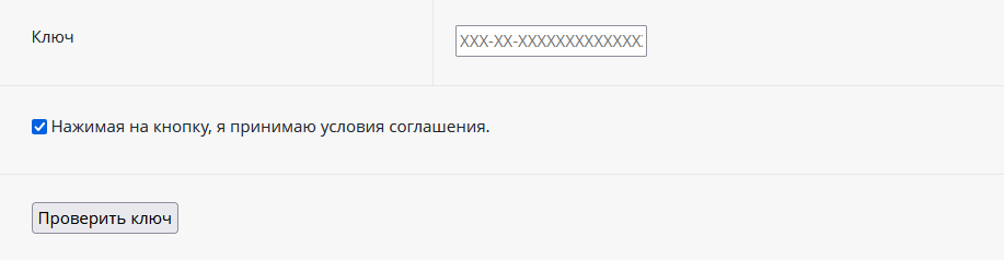 Нажмите кнопку «Проверить ключ» (для версий 11.X.X и выше) или скопируйте лицензионный ключ и вставьте на данной странице в поле для ввода ключа (для версий ниже 11.X.X).