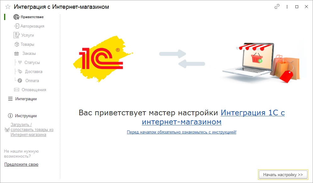 Настройка обмена выполняется с помощью универсального мастера настройки интеграции.