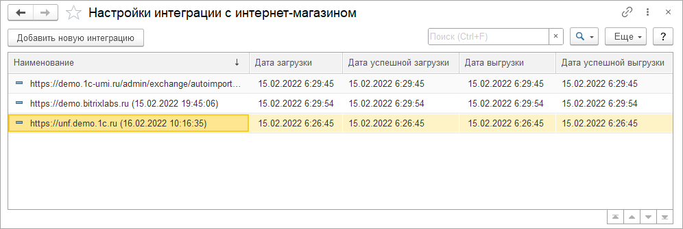 Если уже настроены интеграции с сайтами, по ссылке Интернет-магазин откроется форма списка.