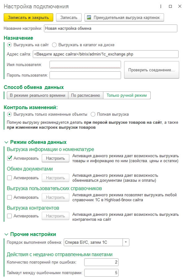 - Возможность обмениваться только заказами (минуя отгрузки и оплаты)
